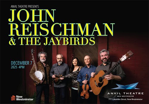 New Westminster, BC. Listening to John Reischman and the Jaybirds is like finding the sweet spot between bluegrass and Appalachian-style old-time music. With master-class musicianship, the band is celebrated for its tasteful and polished sound, balancing instrumental brilliance with exceptional harmony singing. Join us for an enchanting evening of music and harmony as the Anvil Theatre Presents Grammy-winning and Juno-nominated mandolinist John Reischman and the Jaybirds, December 7, 2025.