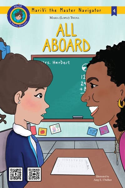 Award-winning author Maria (Lopez) Twena announces the release of All Aboard, the highly anticipated fourth book in her beloved children’s chapter book series, MariVi the Master Navigator. Now available in both English and Spanish at Amazon and wearemarivi.com. The highly anticipated fourth installment continues to follow MariVi, a bilingual third grader, as she navigates life between two cultures—each with its own language, traditions, and expectations.
